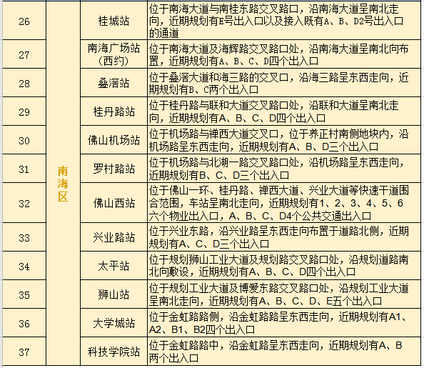 市轨道交通局近日公布了佛山地铁3号线全线37个站点位置和出入口设置情况。目前,佛山地铁2号线一期和佛山地铁3号线的全部站点位置均已公布。