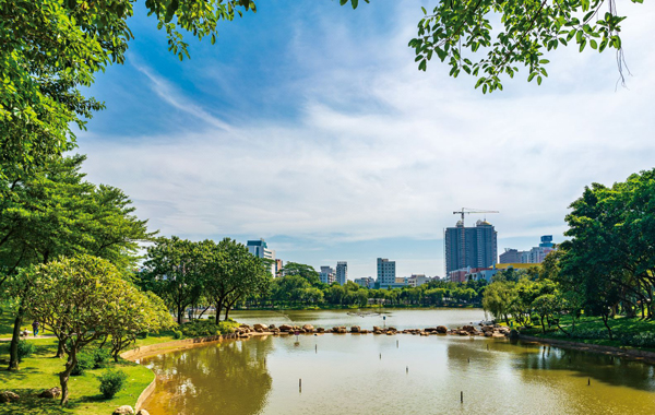 西南中学旁。1931年由西南公益建设促进会倡建,于荒凉的红朱岗上建成。1938年沦陷时遭破坏。建国后经多次修葺,特别是在1977年后进行重修和增建,面貌一新。占地1800平方米。登上高处可一览西南全镇风采。园内曲径迂回,白玉兰等花木婆娑,清静幽雅。卿云、榕荫、稻香、小憩等亭榭以及花塔、曲桥、花棚等相映成趣,为群众休憩的好所在。近年增建有游乐设施,还展出各种观赏动物及附近象岗出土的咸丰铁炮,内容更加丰富。