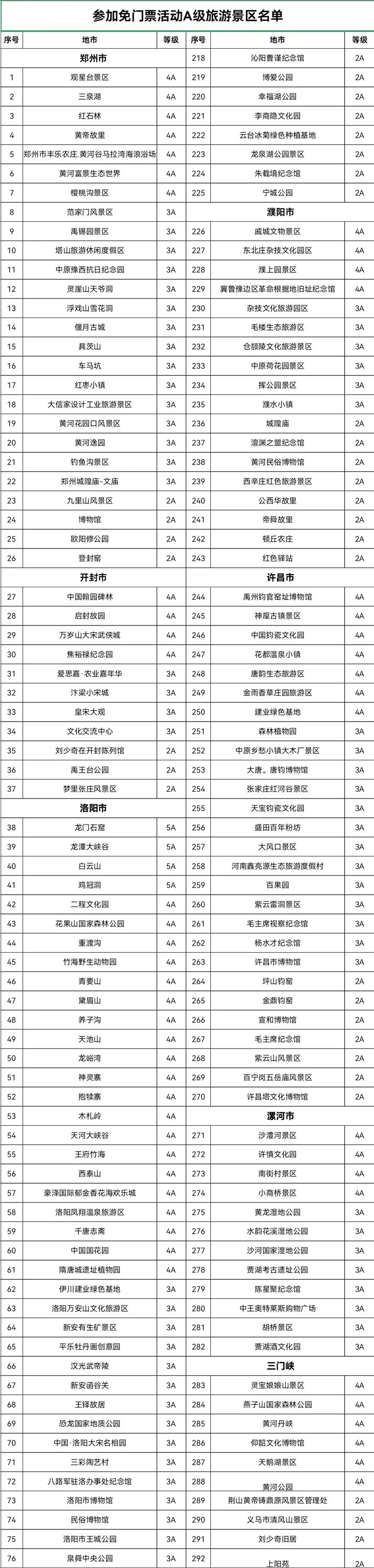 据介绍,此次活动免门票景区名单将在河南省文化和旅游厅官网上公布,门票免费,但不包含景区二次消费、景区内交通等费用。