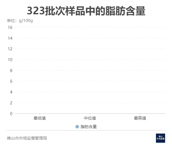 本项目共抽检323批次奶茶类样品,样品中脂肪含量最高值为13.1g/100g,最低为0.2g/100g,中位值2.3g/100g。