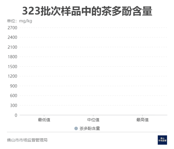 本项目共抽检323批次奶茶类样品,样品中的茶多酚含量最高值为2534mg/kg,最低为16mg/kg,中位值为436mg/kg。