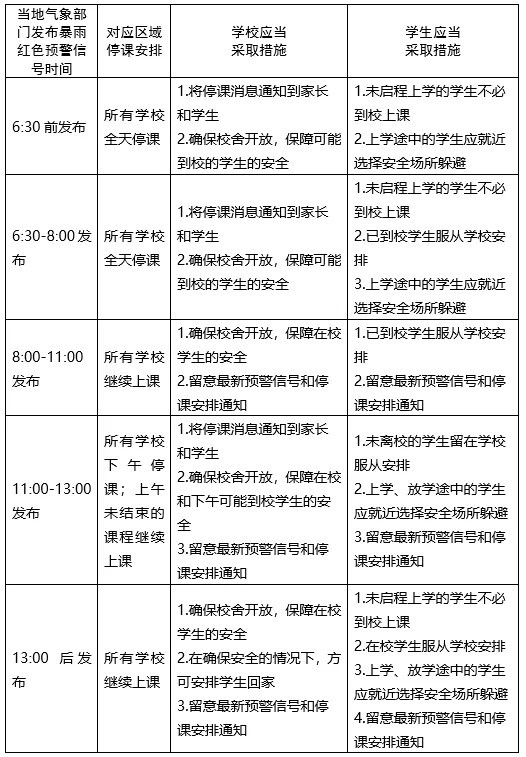 暴雨天气影响下停课安排及应当采取的措施: