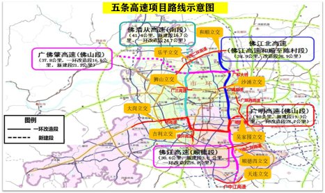 全线高接高完成后,可快速的与珠三角高速公路网全面对接,实现与广三高速狮山立交、佛开高速吉利立交、广佛高速沙涌立交、西二环高速和顺立交、乐平立交、南二环高速顺德西立交、广珠西高速吴家围立交、广中江高速天连立交、广明高速罗格立交等高速互联互通和快速通行。
