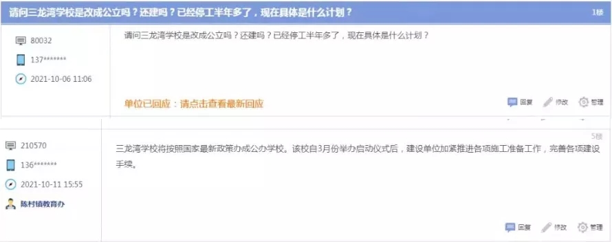 此外,针对目前正在建设的陈村三龙湾学校(暂定名),顺德区陈村镇教育办此前也给予了明确回复:“三龙湾学校将按照国家最新政策办成公办学校。该校自3月份举办启动仪式后,建设单位加紧推进各项施工准备工作,完善各项建设手续。”