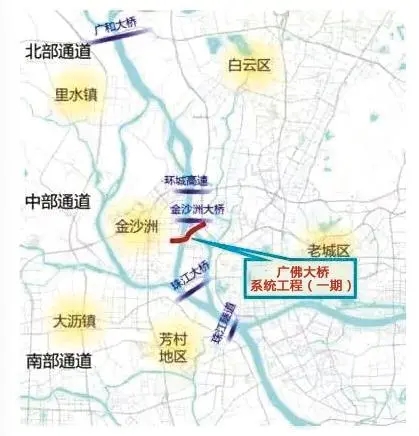 按照规划,一期工程建成后,南海及广州金沙洲地区可快捷到达广州大坦沙岛,经珠江东桥快速到达广州市中心。