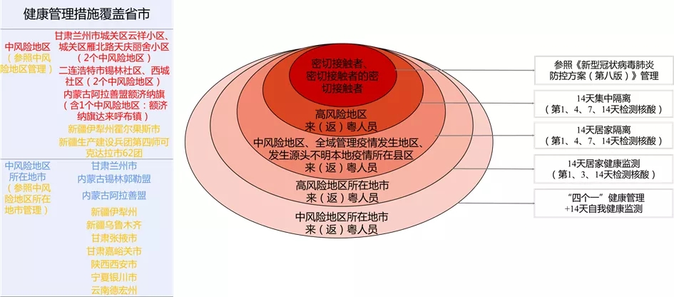 广东疾控根据重点地区分类,确定健康管理措施覆盖省市如下: