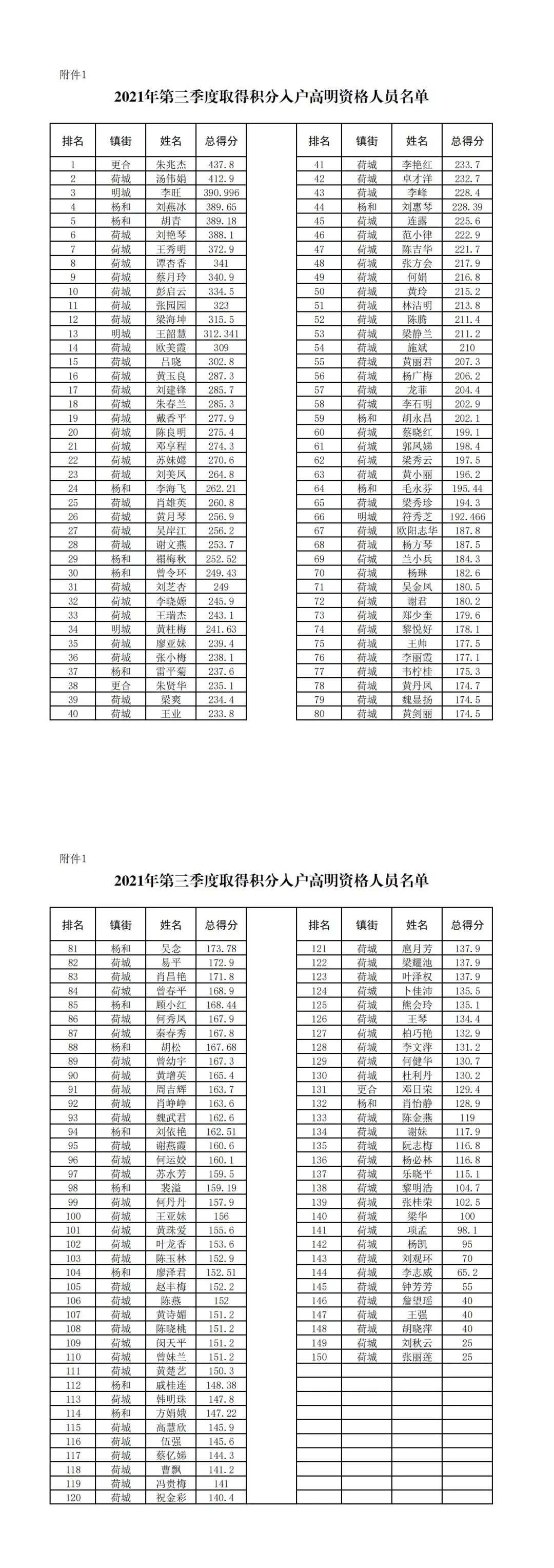 根据《佛山市新市民积分制服务管理办法》(佛府办〔2018〕45号)和《关于2021年度高明区积分入户指标季度分配方案的公告》的规定,第三季度共有150名新市民申请积分入户且符合入户高明资格,未超过当季指标数。现将相关名单进行公示,接受社会监督。