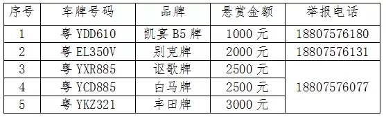 市民如有发现下列车辆线索