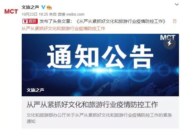 10月23日,文化和旅游部办公厅发布《从严从紧抓好文化和旅游行业疫情防控工作》通知(以下简称《通知》),要求从严从紧落实旅行社疫情防控要求,严格做好外防输入工作。
