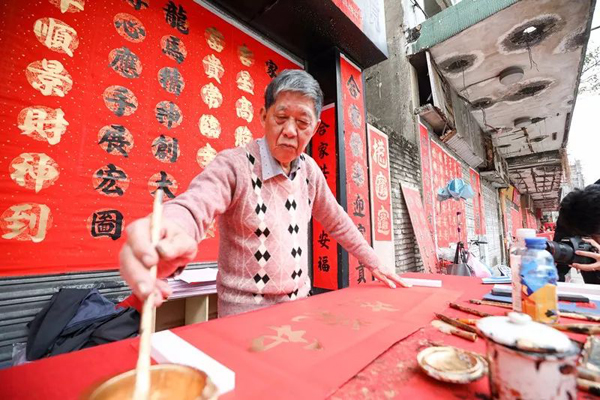 沾上金漆,大笔一挥,写就佛山街坊最美好的新年祝愿 图/佛山新闻网记者 黄惠信摄