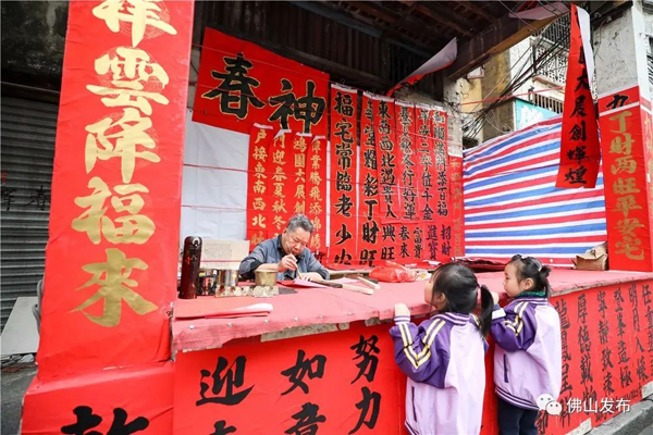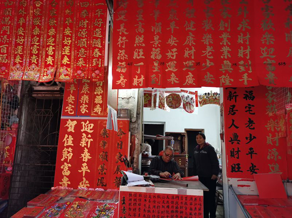 在禅城区松风路、快子路一带的“挥春街”,老师傅们“一年一度”营业了 图/佛山新闻网记者 黄惠信摄