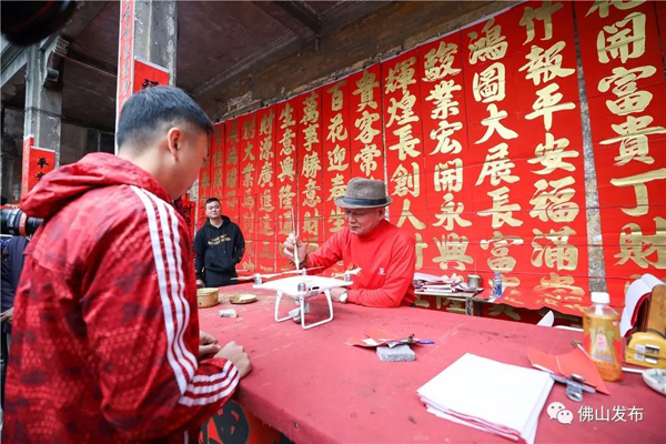 无人机也来讨个“好意头”,写的是什么呢?图/佛山新闻网记者 黄惠信摄