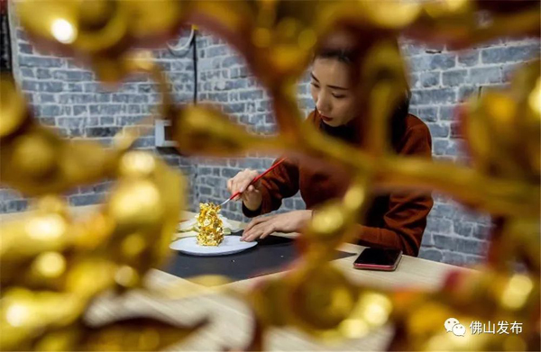 联和金箔厂的师傅们正用金箔贴鼠。图/张秀丽摄