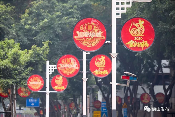 走上街头,鼠年灯牌、大红灯笼挂起来了!图/佛山新闻网记者 黄惠信摄