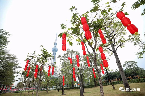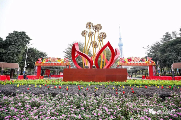禅城区文华公园花市装饰一新,即将迎客。图/佛山新闻网记者 黄惠信摄