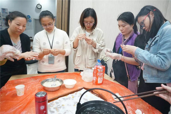 煎堆碌碌,金银满屋;油角弯弯,家财百万。约上工友,齐齐做油角。图/佛山工会