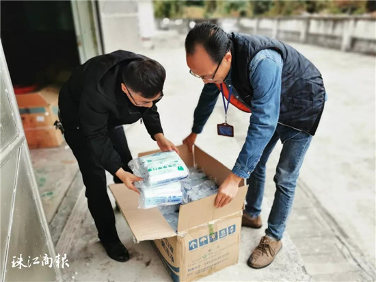 镇街工作人员领取医用护理口罩,将免费派给有需要的市民。/珠江商报记者黄琨摄