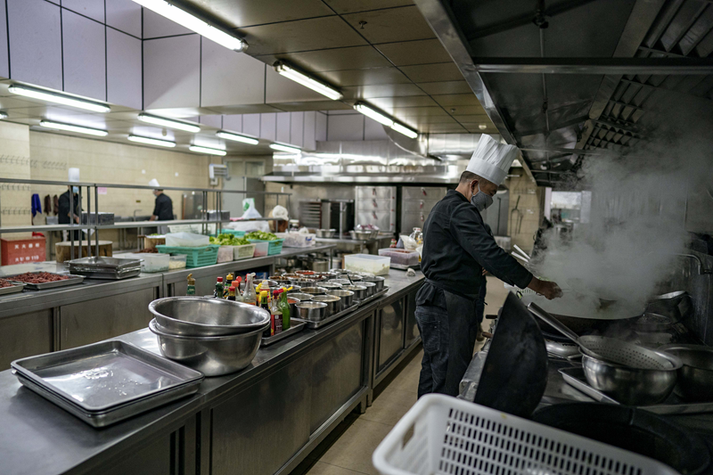 1月29日,云南省一安置点的厨师在为湖北滞留旅客准备晚饭。