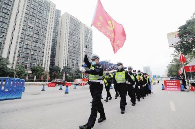 “疫情不灭,我们不退!”昨日,海八路“护城河”联合检疫检查站临时党支部书记、桂城交警中队中队长刘远平,从南海区副区长、南海公安分局局长夏化冰手中接过了“南海公安党员抗疫先锋队”队旗,检查站全体党员庄严宣誓,彰显该支部党员带头冲在防控斗争第一线的坚定信心。