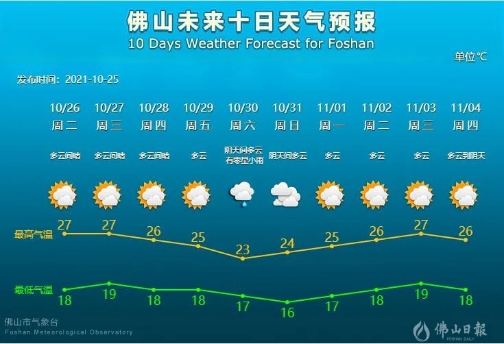 佛山市气温逐日缓慢下降