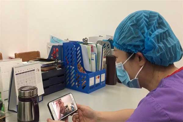大年初三,佛山市妇幼保健院麻醉科主任医师叶玉萍坚守在岗位。今天是她儿子十二岁生日,本来已预订好蛋糕为儿子庆生的,但疫情当前,祝福的话语只能通过微信和视频。(佛山市妇幼保健院供图)