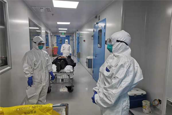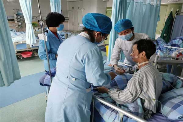 佛山市第二人民医院内,医护人员在护理病人。(佛山市第二人民医院)