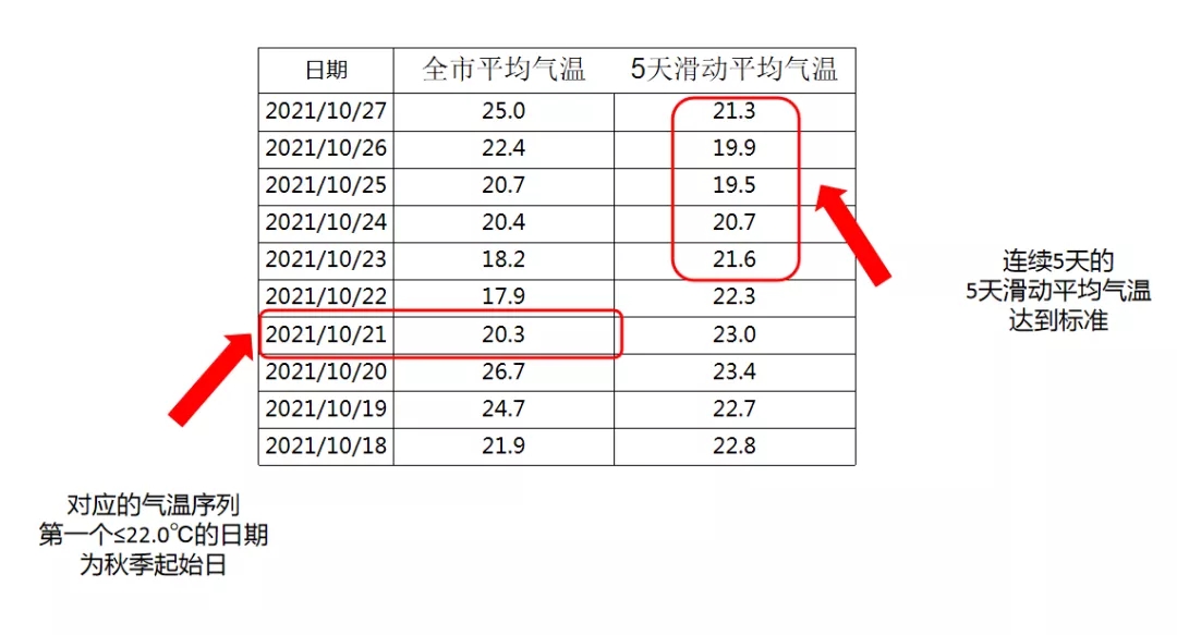 据佛山气象台27日晚消息,按照入秋标准,连续5天的5日滑动平均气温≤22.0℃,则以对应的气温序列中第一个≤22.0℃的日期作为秋季起始日,10月21日是第一个≤22.0℃的日期,因此,顺德于10月21日成功入秋。