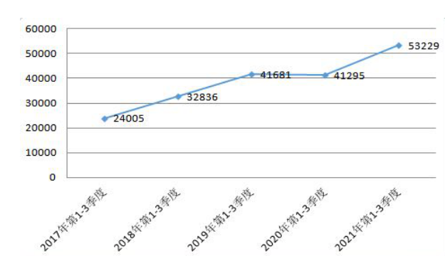 2021年1-3季度,全区新登记各类市场主体53229户,日均新增登记市场主体283户。市场主体总量近五年来整体保持上涨趋势。今年1-3季度的增幅更创下了近五年的历史新高。