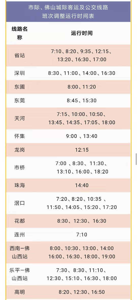 调整停靠:佛山家博城总站。