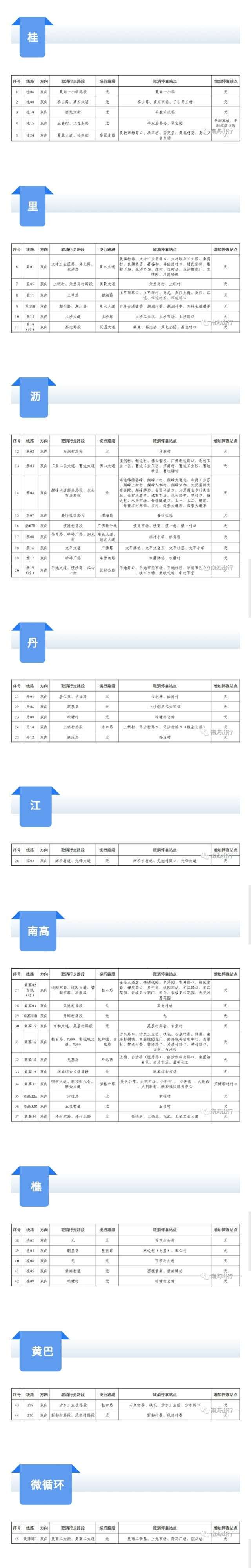 取消停靠:南庄广场、南庄医院、吉利墟、吉利市场、过境路口、南庄中队、吉利购物广场、杏吉路阮村路口、吉利小学、吉利社边、吉利田边、吉利中学、杏头村委会、苏滘村、贺丰南街、贺丰牌坊、理教、良教农场、良教牌坊、良教沙牌坊、马滘牌坊、上华路口、旭景豪庭、威斯广场、乐从站、乐从路口、腾冲牌坊、小布站。