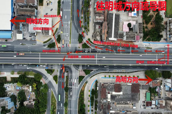 人和跨线桥及人和市场路段(荷城往明城方向),高明大道将全线封闭,请过往车辆经杨西大道往西安方向行驶,经三和路行至和意路后,驶回高明大道;往杨梅方向不受影响。
