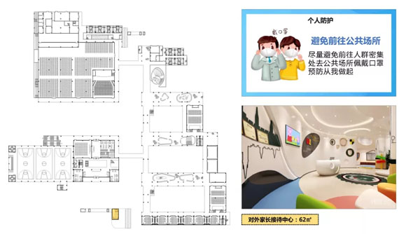 华南师范大学附属南海学校在主校门侧边特别设计了对外的家长接待中心,家长在校外便可与师生进行日常交流,便于学校防疫管理。