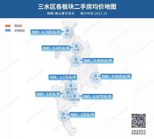 以目前小区均价1.1万/平来看,对比同房价梯队的三水西南、云东海,其更靠近禅桂主城。
