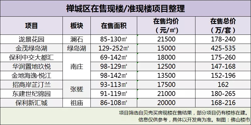 据了解,目前禅城区有8个在售项目有现楼,涉及澜石、绿岛湖、南庄、张槎等板块。
