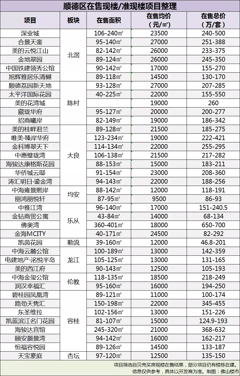 顺德区则有38个项目有现楼在售。除了陈村、北滘、大良等限购区域,不限购的区域主要分布在容桂板块。
