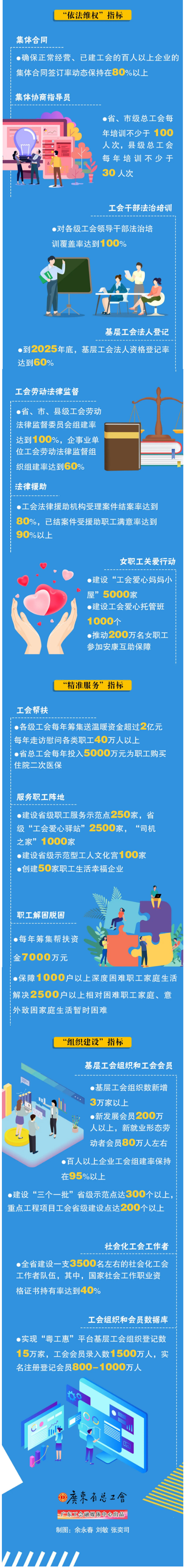 《规划》从强化思想政治引领、拓展建功立业载体、切实维护职工合法权益、构建和谐劳动关系、提升职工服务质量和水平、加快智慧工会建设、深化工会改革创新、加强工会系统党的建设等8个方面,对未来5年的重点工会工作进行了谋划部署。
