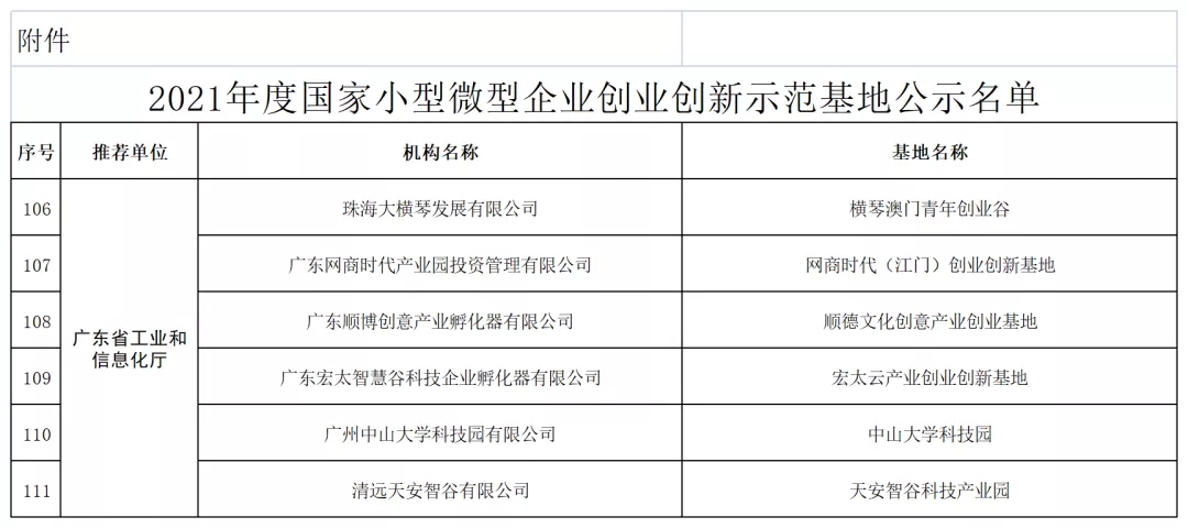 根据《国家小型微型企业创业创新示范基地建设管理办法》(工信部企业〔2016〕194号)、《工业和信息化部办公厅关于组织推荐2021年度国家小型微型企业创业创新示范基地的通知》(工信厅企业函〔2021〕88号),工业和信息化部组织开展了2021年度国家小型微型企业创业创新示范基地评审工作,共有168家基地通过了审核。