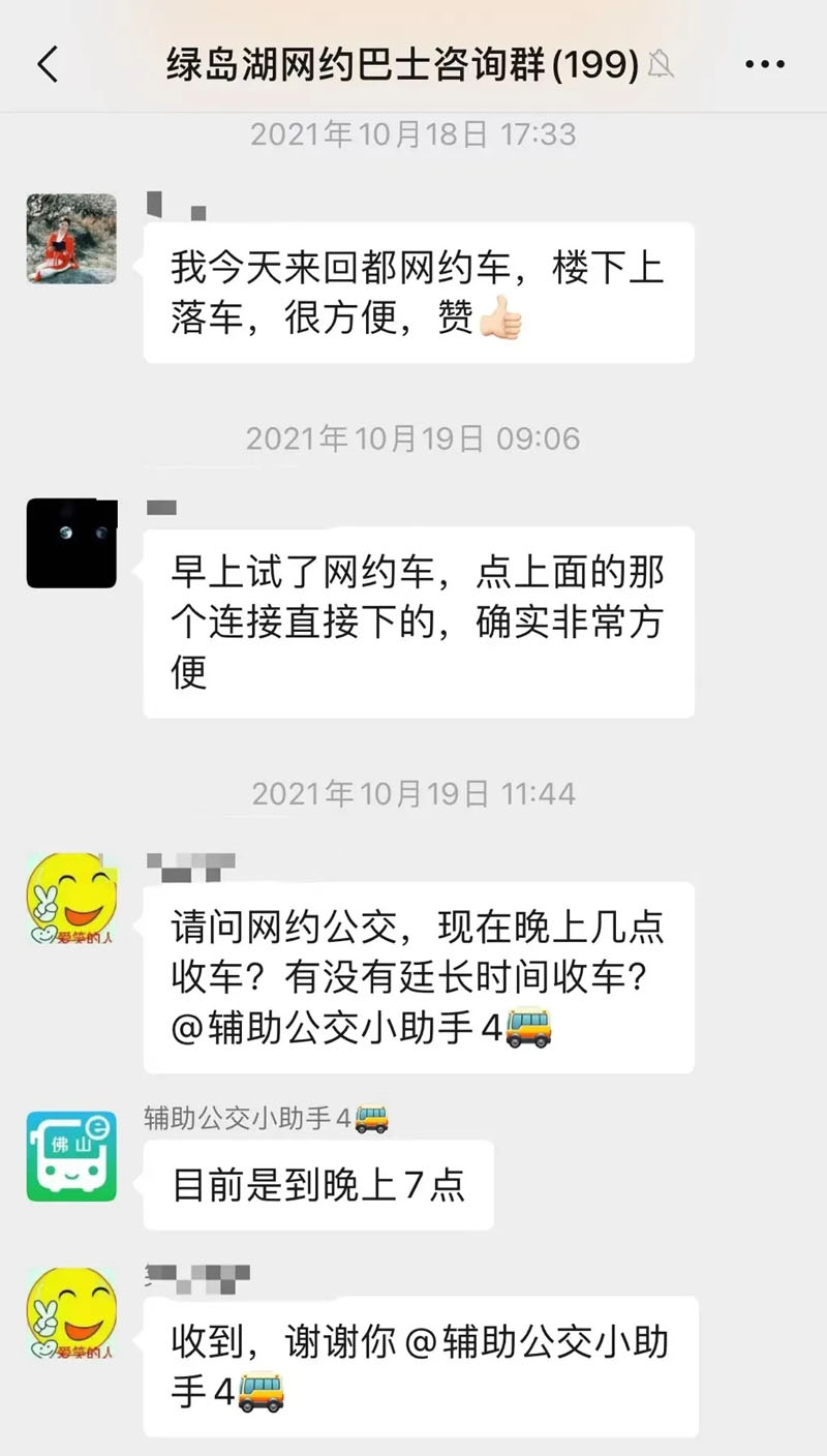 网约巴士自9月24日起在禅城绿岛湖片区上线后,就受到了该片区街坊市民的欢迎和好评,大大改善了该片区居民的出行!与此同时,市民也提出了希望延长服务时间的需求。