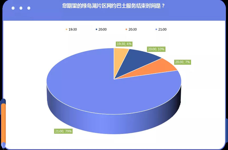 为进一步了解市民对网约巴士的真实感受和需求,从而改善服务品质,让网约巴士更加贴近需求,佛山市公共交通管理有限公司禅城分公司在10月14日至10月21日期间开展了关于禅城区绿岛湖片区网约巴士的调查问卷。此次调查中,近八成市民希望网约巴士延长服务结束时间至21:00!