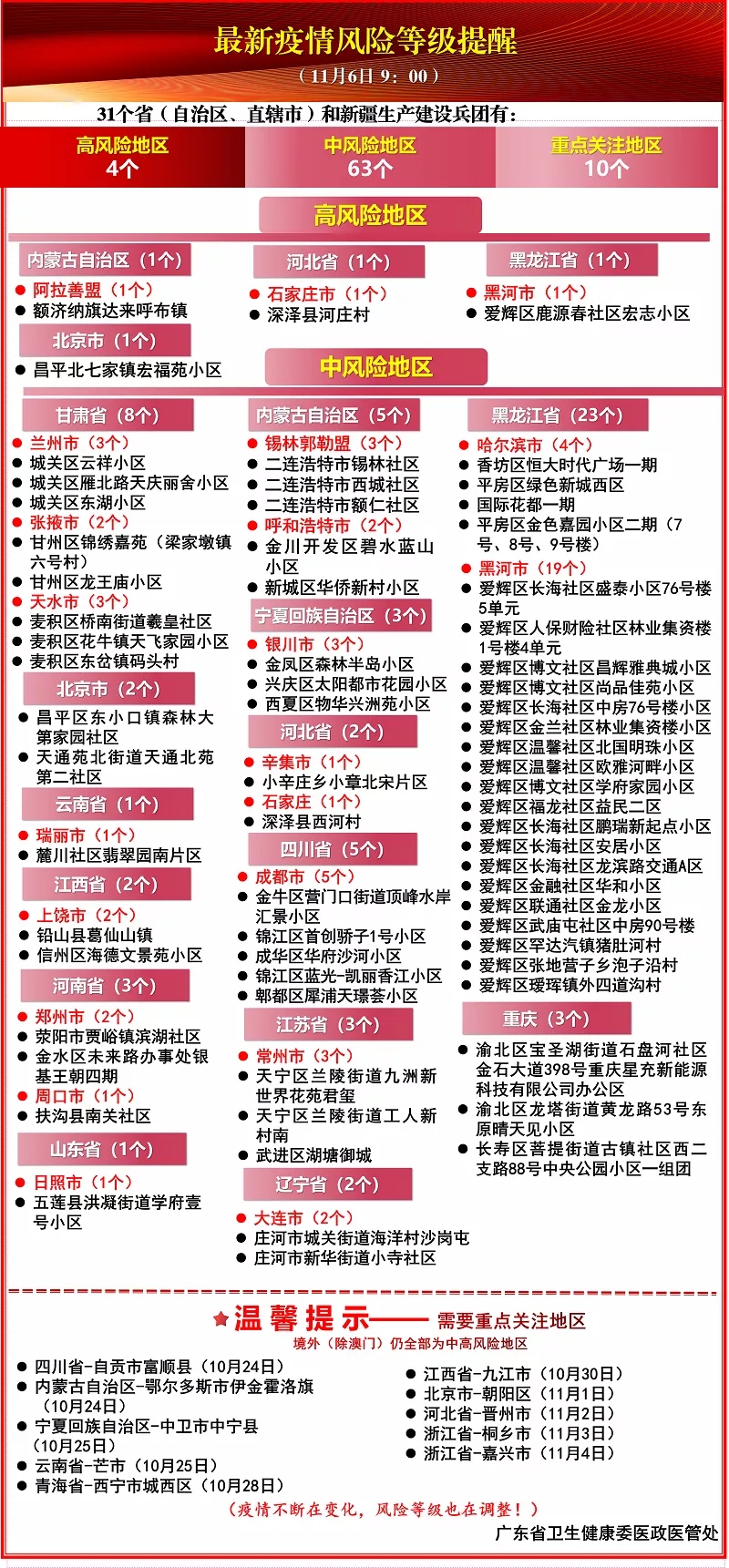 1、请10月19日以来,有河南郑州新密市旅居史的来(返)粤人员,特别是去过新密银基冰雪世界及冰雪世界酒店的人员,尽快向社区报备,配合当地做好核酸检测等疫情防控措施。