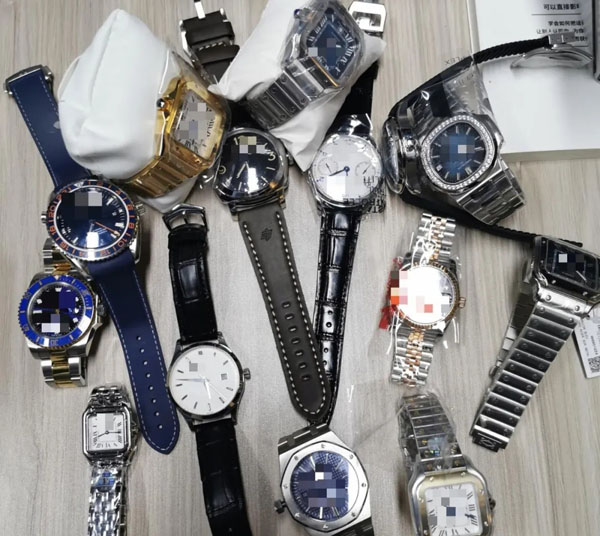 随后,执法人员以设备记录和现场员工为突破口,逐一检查了经营场所内的电脑和手机设备,并对现场4名工作人员分别调查,发现熊某自建购物网站,并在知名跨境电商平台“速某通”全球版注册多家网店,聘请员工在不同网店销售其购进的多种品类的假冒奢侈品牌手表,相关订单详情显示其以明显低于正品价格的售价对名表进行销售,销售价格与真品价格存在巨大差异,涉案货值巨大。