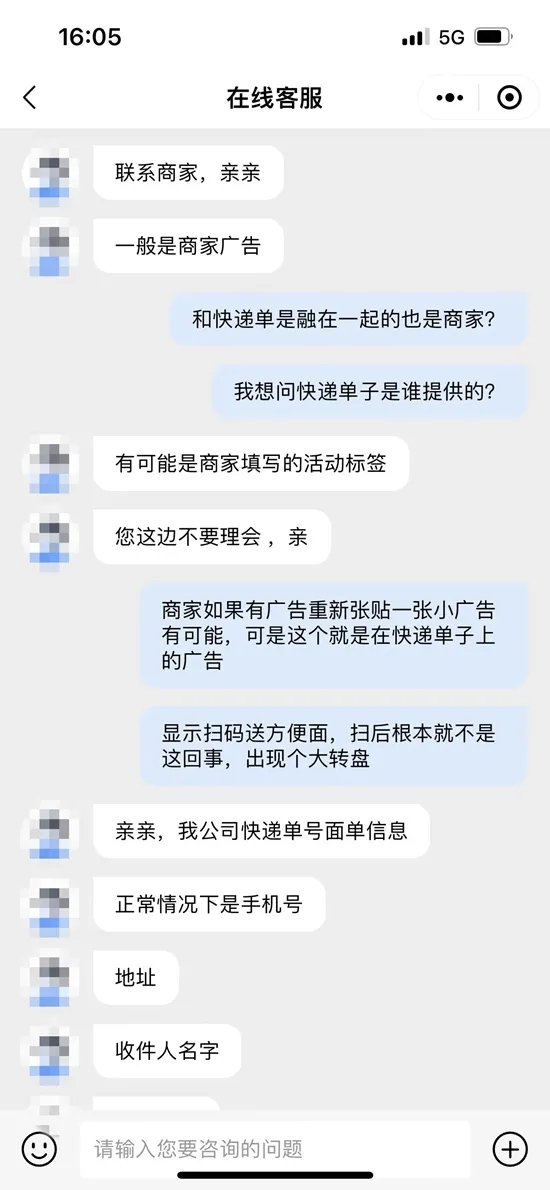 针对快递单上印广告一事,某快递企业的客服人员表示,一般是商家广告,有可能是商家的活动标签。