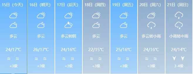 17日:多云转阴,16~24℃;