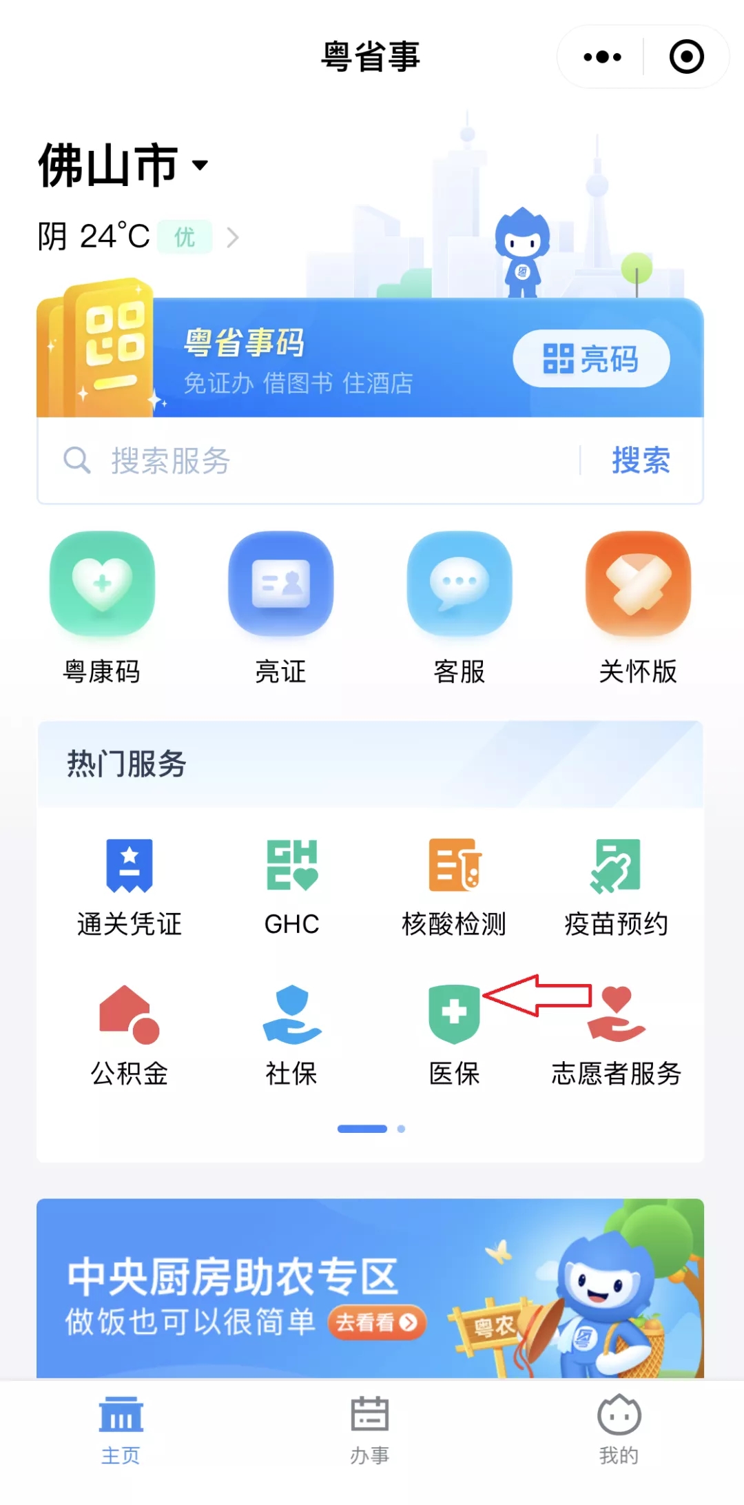 02、进入“粤省事”小程序,用户登录后点击“医保”;