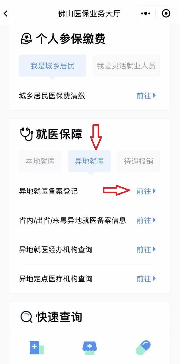 长住(驻)异地就医备案已开通网上办理!参保人在手机上可通过“粤省事”、“粤医保”微信小程序或安装“国家医保服务平台”APP办理。