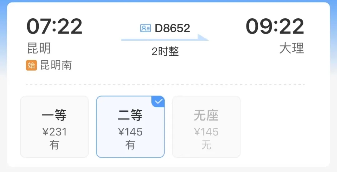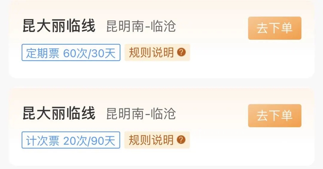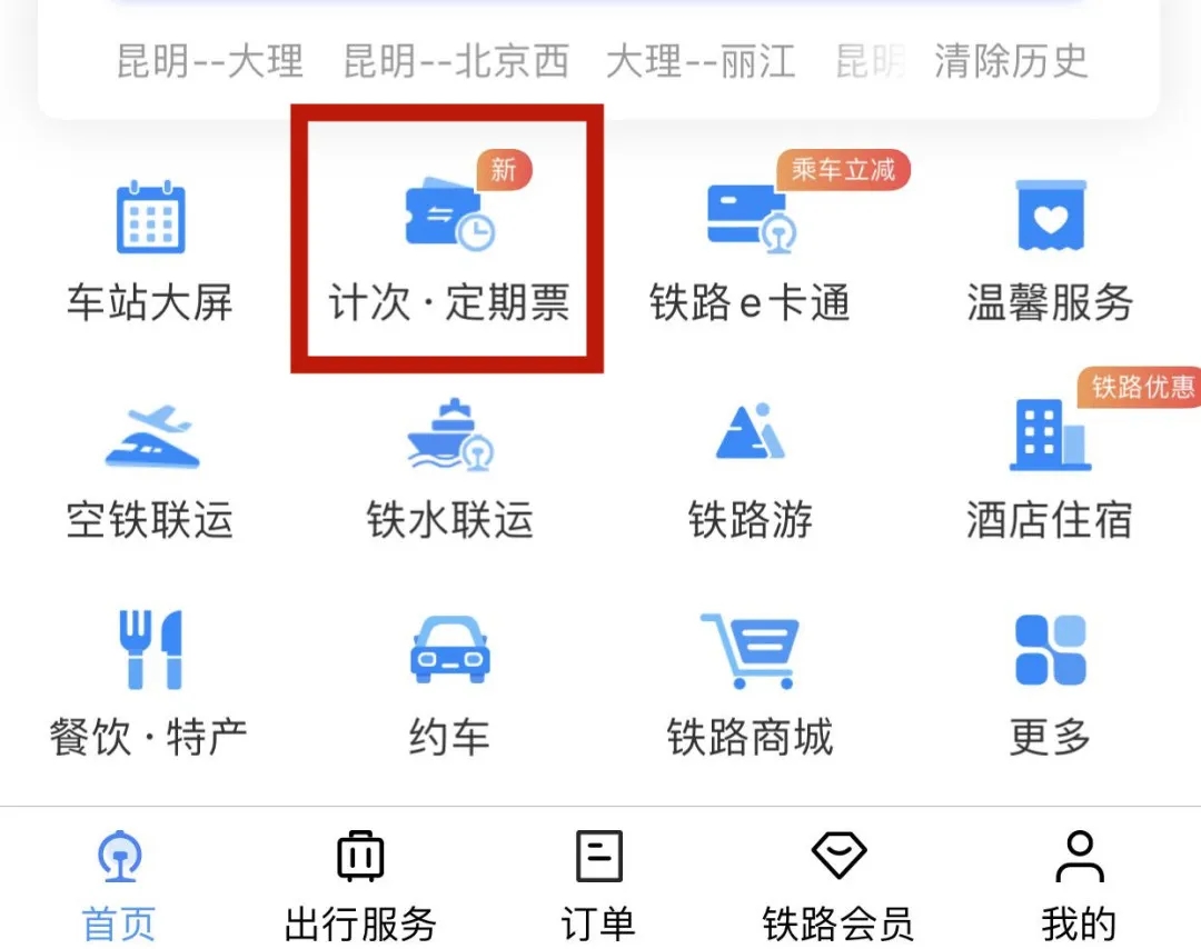 计次票和定期票一次购买、一次支付、多次使用,并享受一定的票价折扣优惠,尤其适合商旅及通勤旅客。以昆明至大理计次票为例: