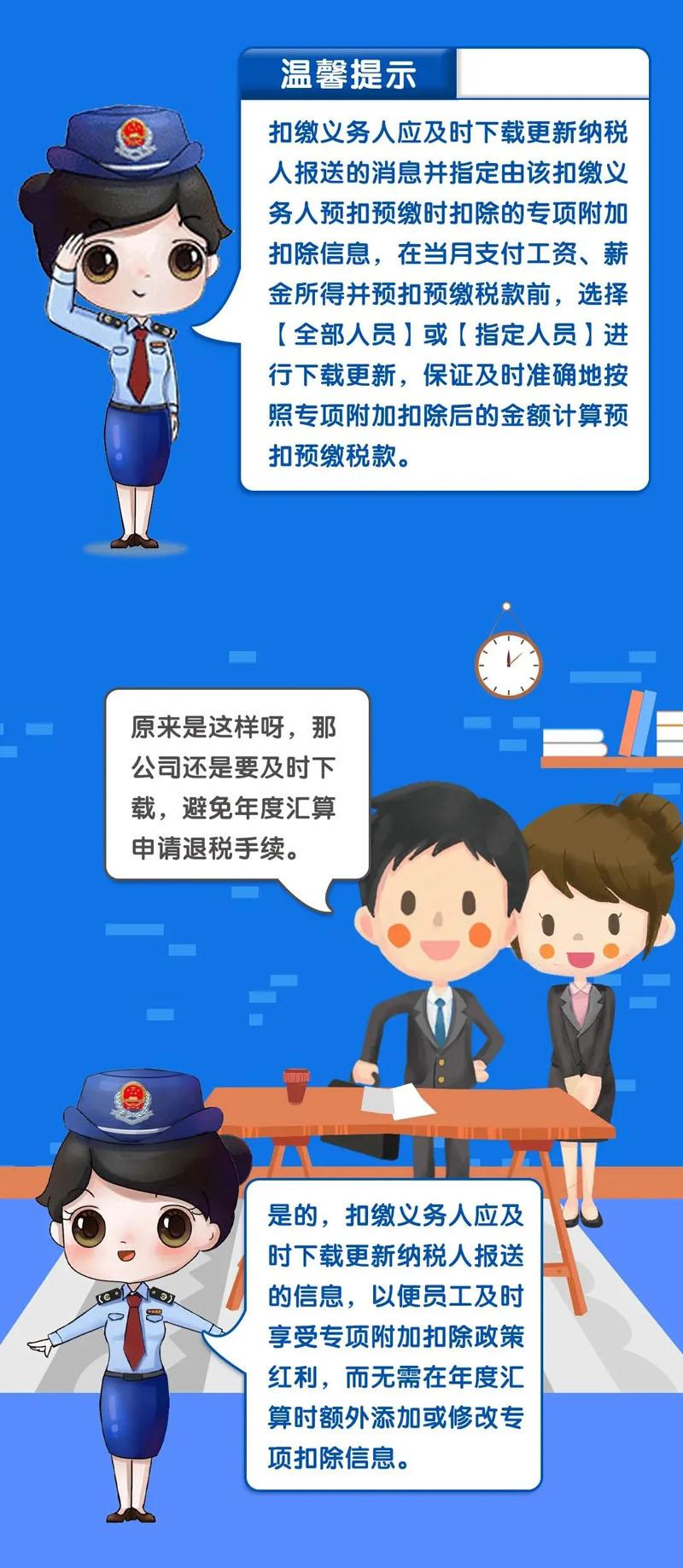 概述:扣缴义务人应几时下载更新纳税人的消息并指定由扣缴义务人预扣预缴时扣除的专项附加扣除信息......