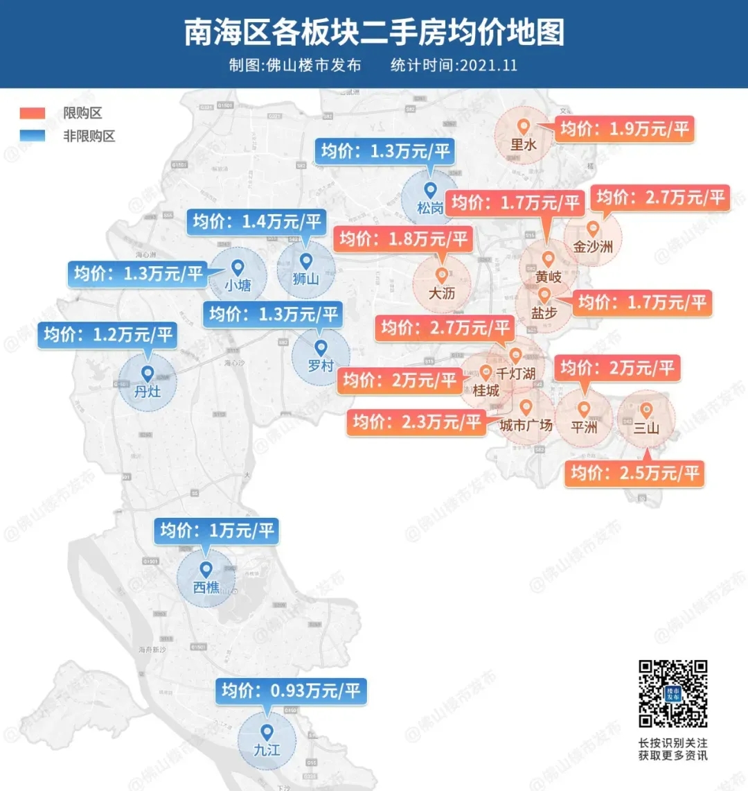 我们来看看最能反映市场真实情况的二手市场。从南海最新均价地图来看,金沙洲以2.7万/平的二手均价,占据佛山二手房价第一梯队,稳如泰山。