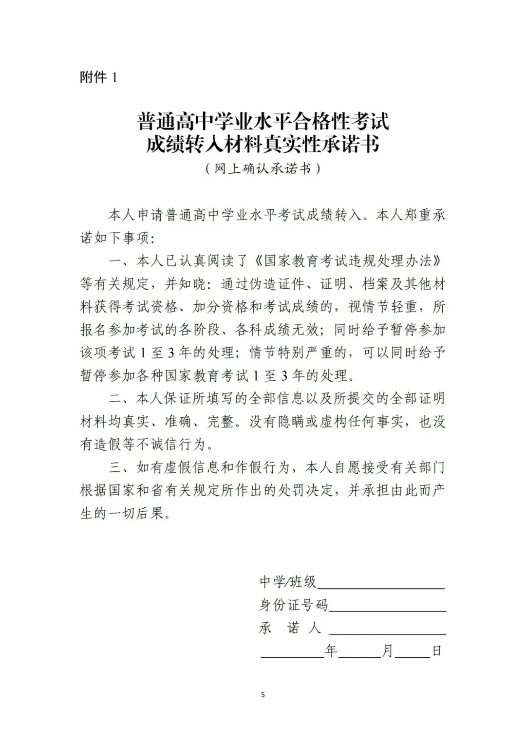 1.广东省普通高中学业水平合格性考试成绩转入材料真实性承诺书(网上确认承诺书)