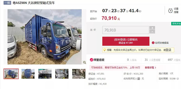 基本介绍:估价对象为大运牌轻型厢式货车,车牌号为粤A5Z98N;整备质量为2805kg,核定载质量为1495kg,车辆外观良好,内饰良好。